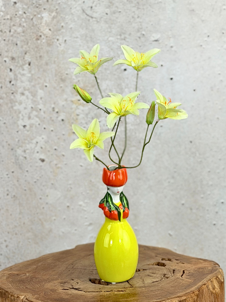 Mini zijden boeket "Yellow Thoughts" - inclusief vaas