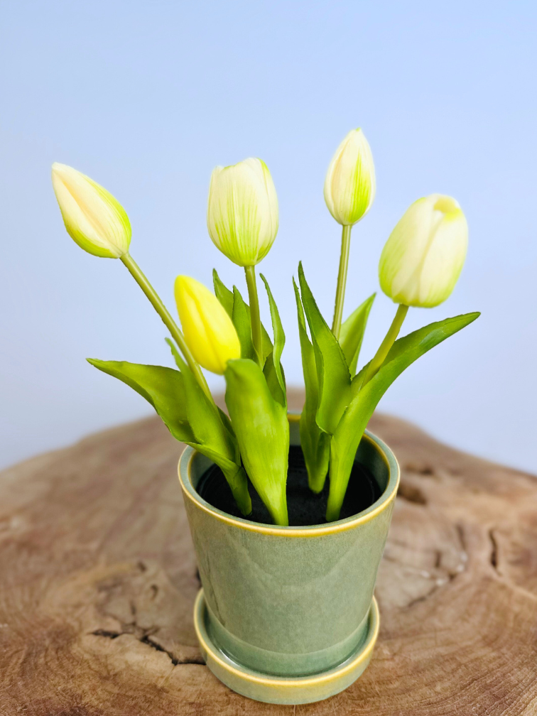 Kunst Tulpen - wit (incl. groene pot) | 30cm