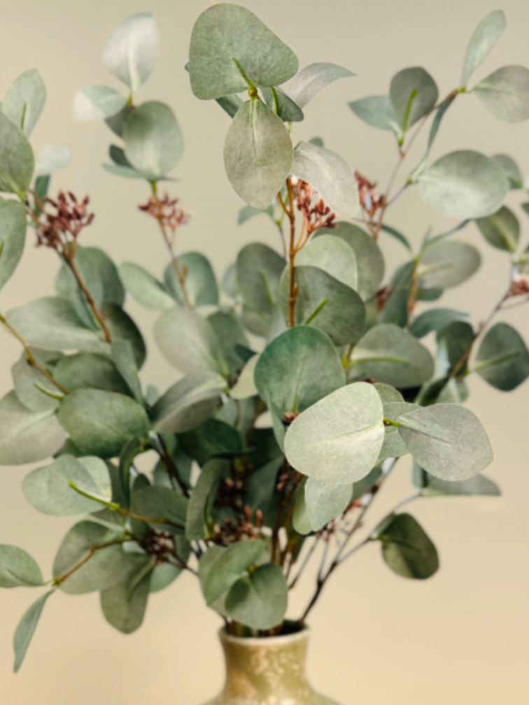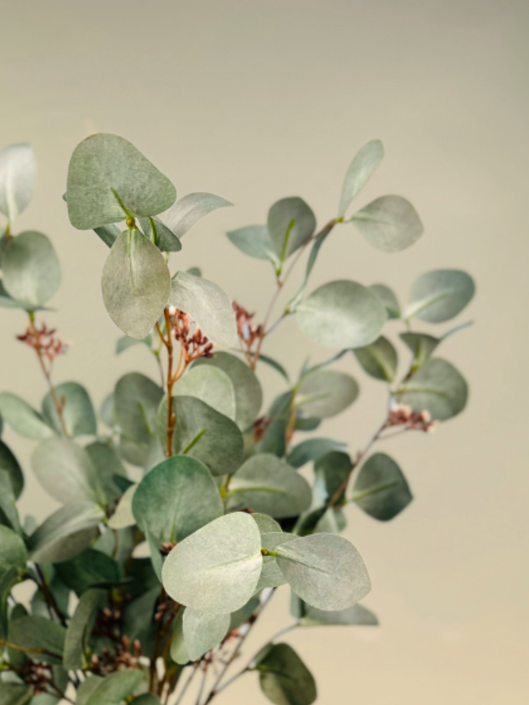 Loop jij helemaal warm voor eenvoud en elegantie? Dan hebben we goed nieuws, namelijk Euca Love. Dit is een zijden boeket die de natuurlijke, frisse sfeer in elke ruimte kan terugbrengen. Het prachtige boeket brengt de prachtige en sierlijke eucalyptustakken in een vers en fris daglicht. Het boeket is perfect voor wie houdt van een rustgevende en vooral ook stijlvolle uitstraling. De perfecte toevoeging van subtiel, groen en onderhoudsvrij.