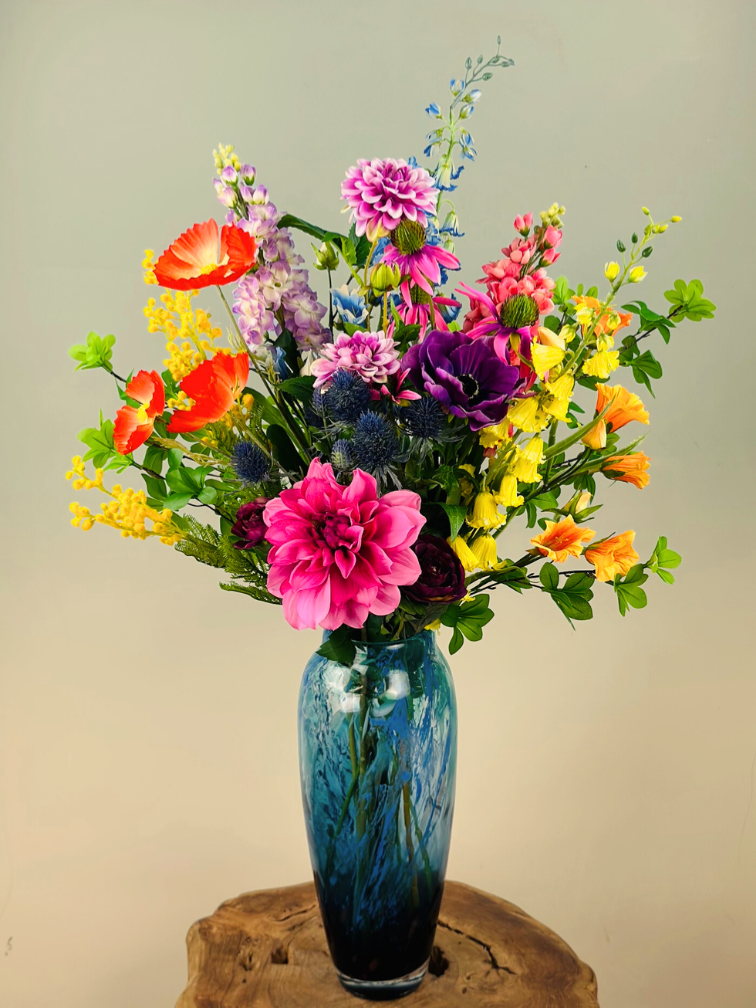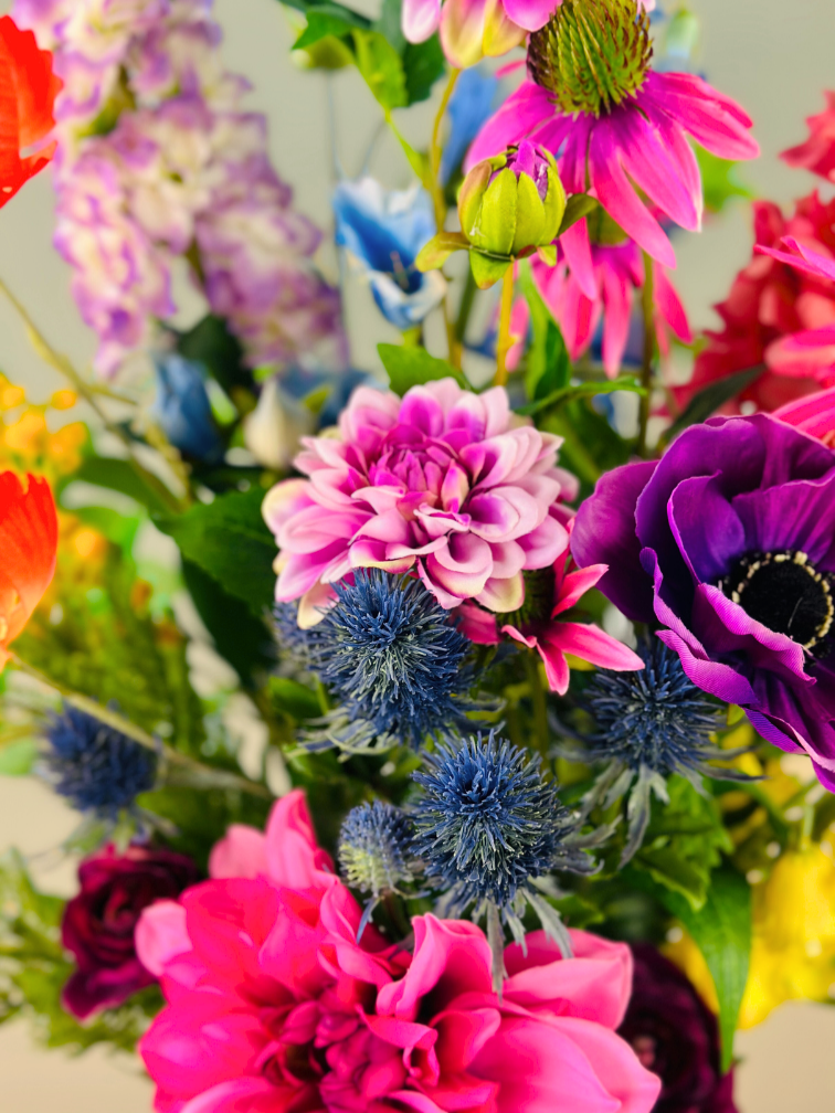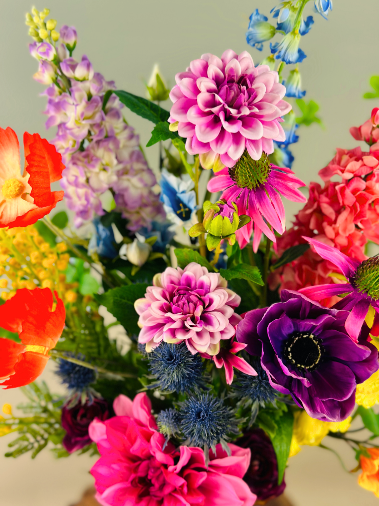 Geen water geven, geen verwelkte bloemen – dit boeket blijft moeiteloos stralen. Een licht afstoffen is alles wat nodig is. - Seizoensonafhankelijk