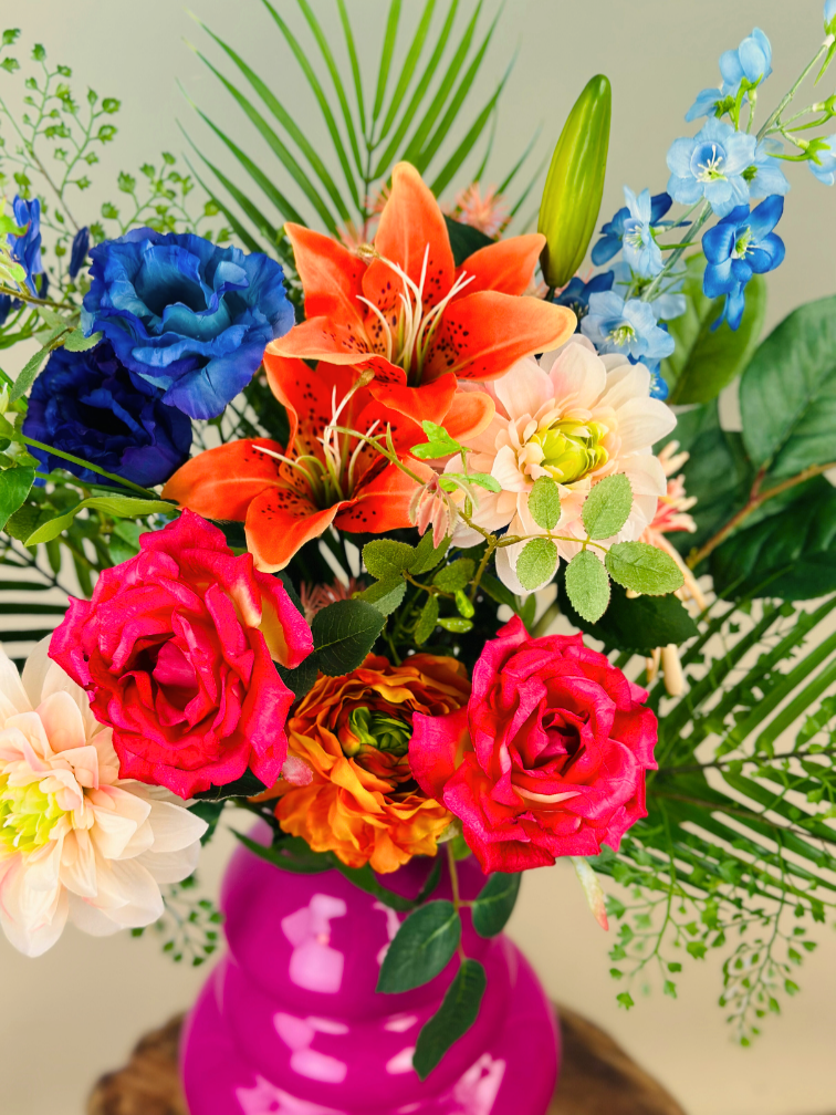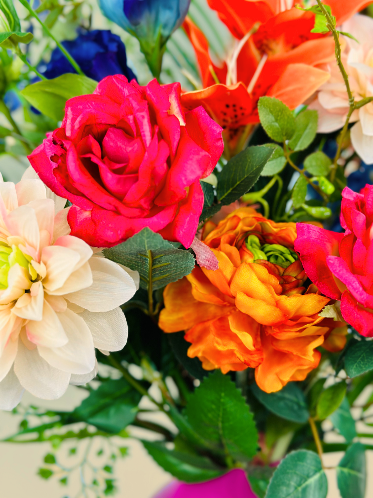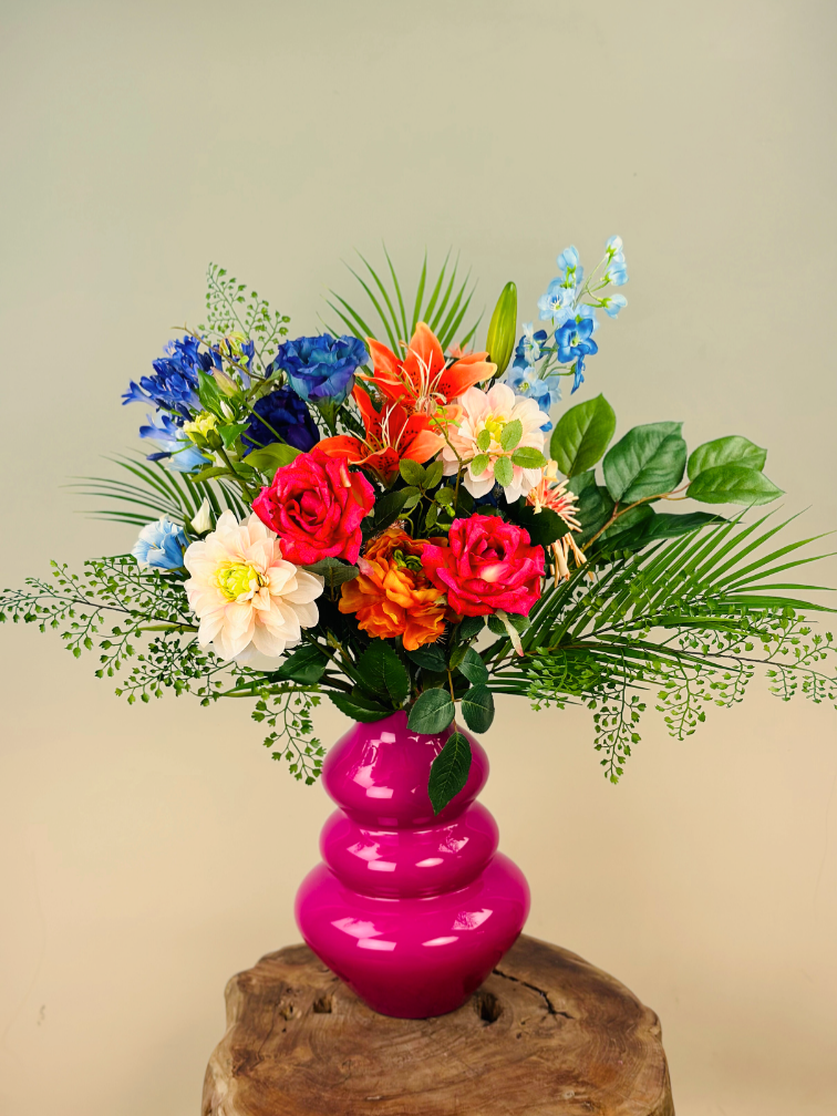 Ben jij op zoek naar een kleurrijk en levendig boeket dat altijd in volle bloei is? Dan hebben wij speciaal voor jou het zijden boeket Luminous Colors. Dit zijden boeket staat erom bekend een ware explosie te zijn van stralende tinten, dit heeft het boeket dan ook echt te danken aan de prachtige zijden bloemen. We kunnen je garanderen dat dit boeket een warmte en ook energie kan leveren in elke ruimte. Zie het als een echte eyecatcher welke nooit echt verwelkt.