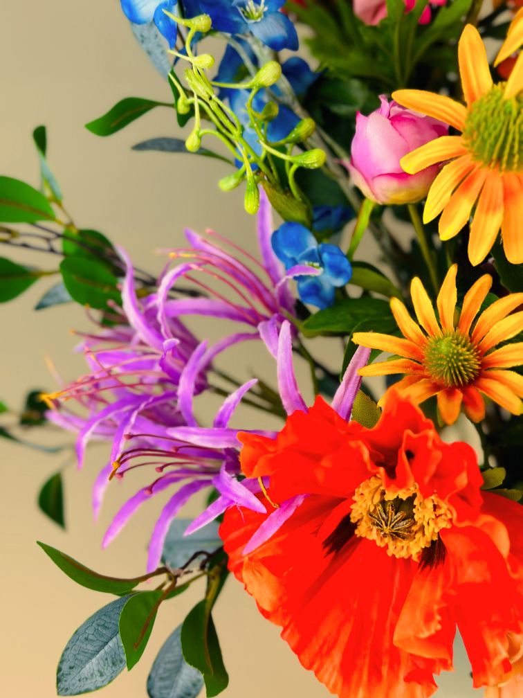 Hoewel het boeket onderhoudsvrij is, raden we aan het niet in fel zonlicht te plaatsen om verkleuring te voorkomen. - Geschikt voor elke plek