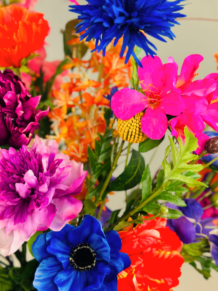 Heb jij altijd al eens een statement willen maken? Dan ben je met ons zijden XL-boeket Madame Bouquet aan het juiste adres. Dit prachtige, fleurige en vooral ook kleurrijke boeket zit helemaal vol met levendige zijden bloemen. Dit boeket is helemaal in staat om welke ruimte dan ook helemaal te verfraaien. Dankzij het gigantische formaat en vooral ook de speelse uitstraling is dit boeket een ware eye catcher die nooit kan verwelken. _________________________________________________________________________________________