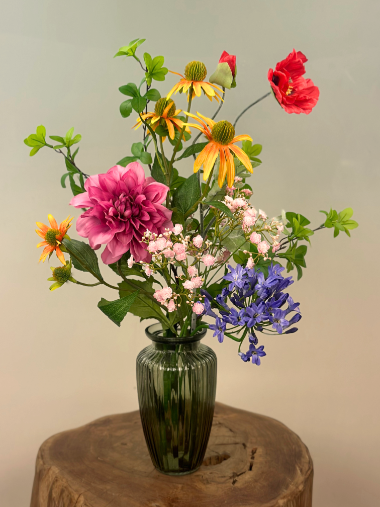 Scoor nu onze prachtige combinatiedeal zijden boeket 'Elanor's Bloei'. Dit prachtige boeket wordt automatisch geleverd met de stijlvolle, groene vaas.