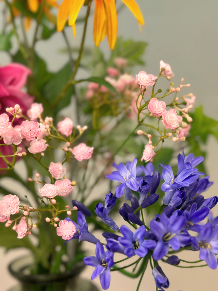 Dit boeket bestaat uitsluitend uit kunstbloemen en geen zijden bloemen. Hoewel het wel vaak een zijden bloemen boeket genoemd wordt. Deze soort bloemen zijn een stuk goedkoper dan zijden bloemen, maar genieten wel van dezelfde eigenschappen. Enkele eigenschappen van het boeket:
