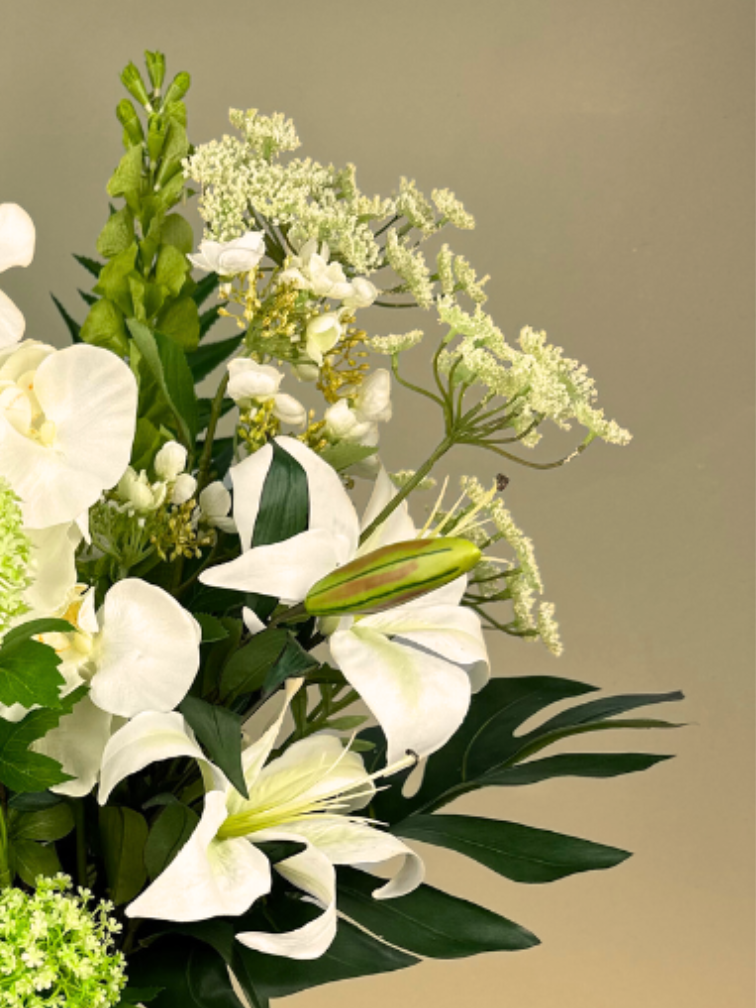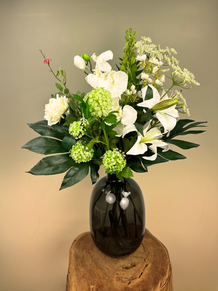 Geen water geven, geen verwelkte bloemen – dit boeket blijft moeiteloos stralen. Een licht afstoffen is alles wat nodig is. - Seizoensonafhankelijk