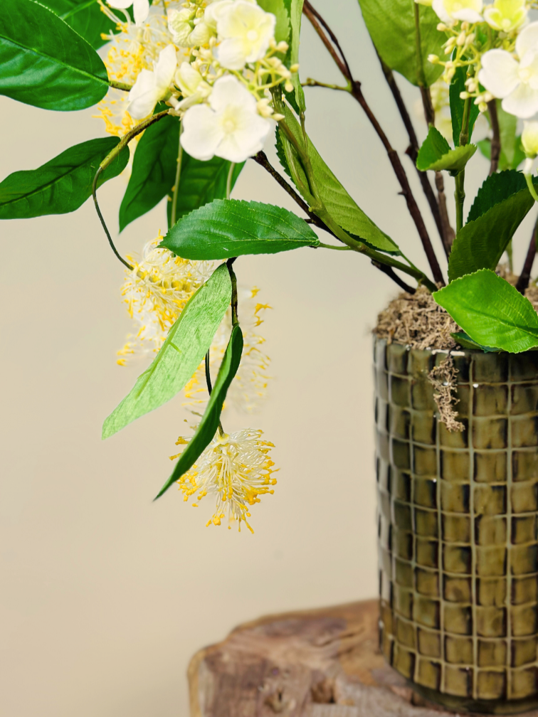 Ons zijdenbloemen boeket 'Free Spirit' is samengesteld met prachtige speelse zjidenbloemen'. Deze combinatie brengt een rustgevend gevoel met zich mee. Het zijdenbloemen boeket 'Free Spirit' is gestyled in de luxe geglazuurde vaas van het bekende merk Ter Steege.