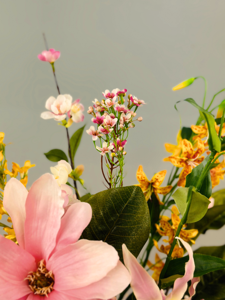 Wil jij jouw woonkamer meer sfeer geven? Dan is ons vrolijke zijdenbloemen boeket perfect voor jou! Met haar gezellige kleuren haal je een echte eyecatcher naar jouw woonkamer.