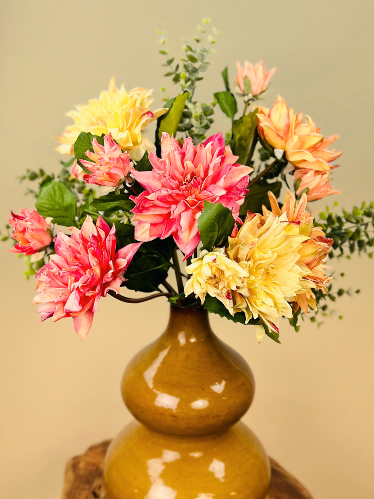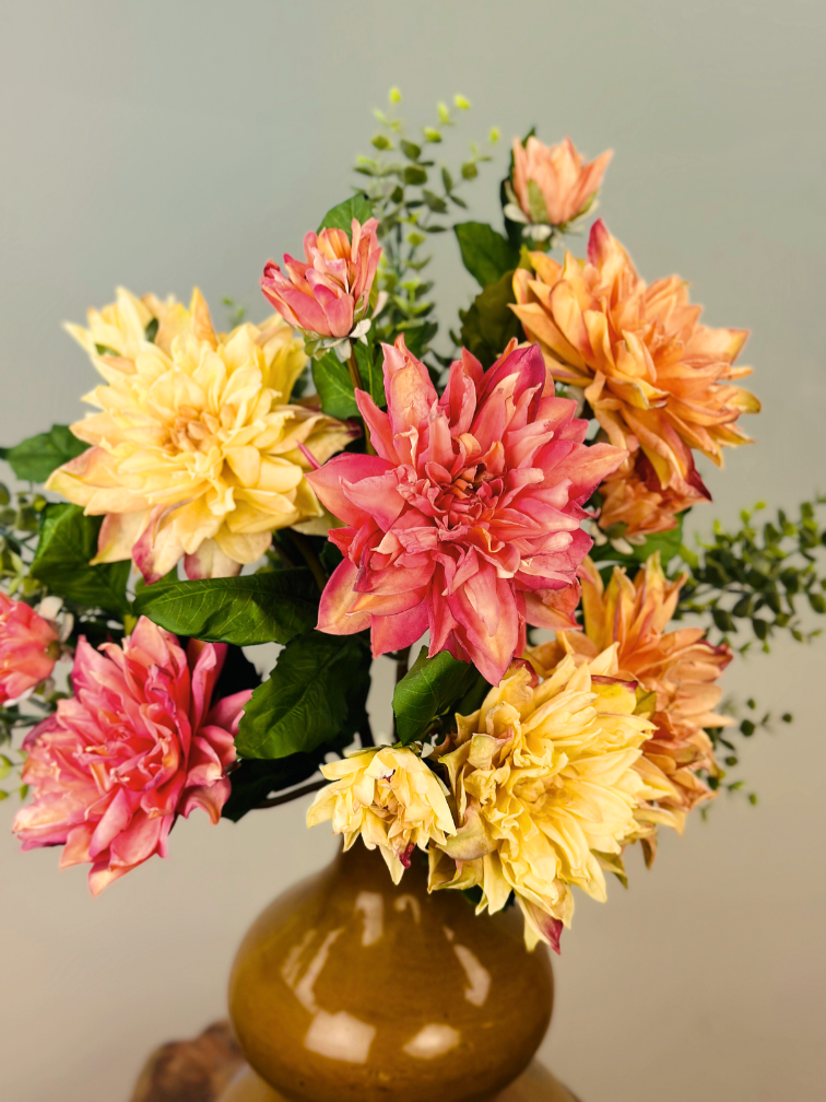 Maak kennis met ons prachtige zijdenbloemen boeket 'Orlesian Flowers'. Dit boeket is gevuld met pastelgekleurde Dahlia's. Perfect voor de Dahlia liefhebber die het hele jaar van deze prachtige bloemsoort wilt genieten. Zijdenbloemen boeket "Orelsian Flowers" is verkrijgbaar met of zonder de trendy vaas.