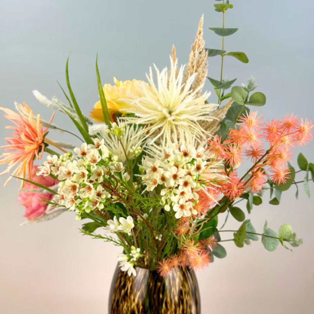 Geen water geven, geen verwelkte bloemen – dit boeket blijft moeiteloos stralen. Een licht afstoffen is alles wat nodig is. - Seizoensonafhankelijk