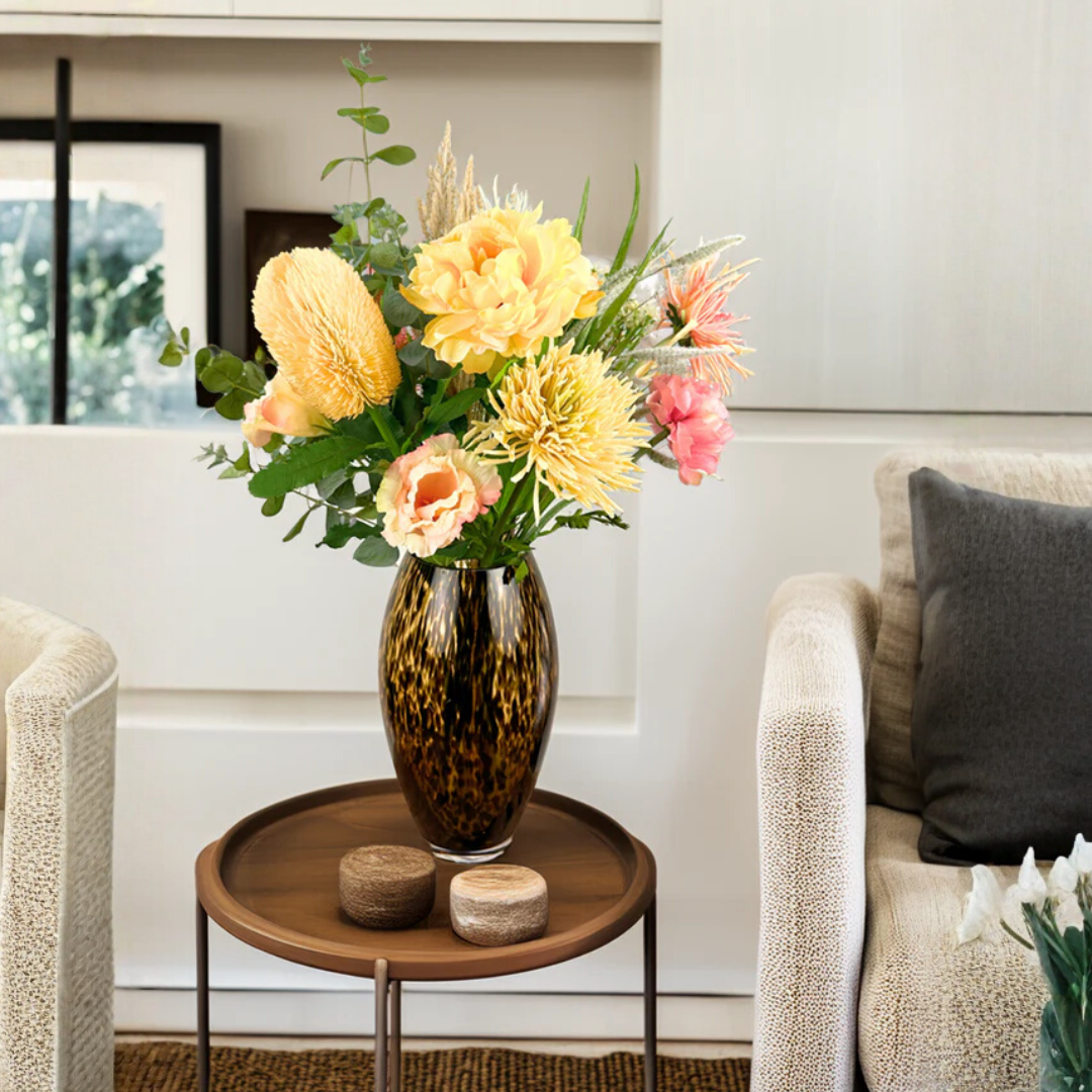 - Materialen: Zijden bloemen, stijlvolle vaas