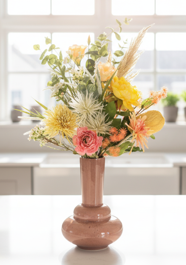 Hoewel het boeket onderhoudsvrij is, raden we aan het niet in fel zonlicht te plaatsen om verkleuring te voorkomen. - Geschikt voor elke plek