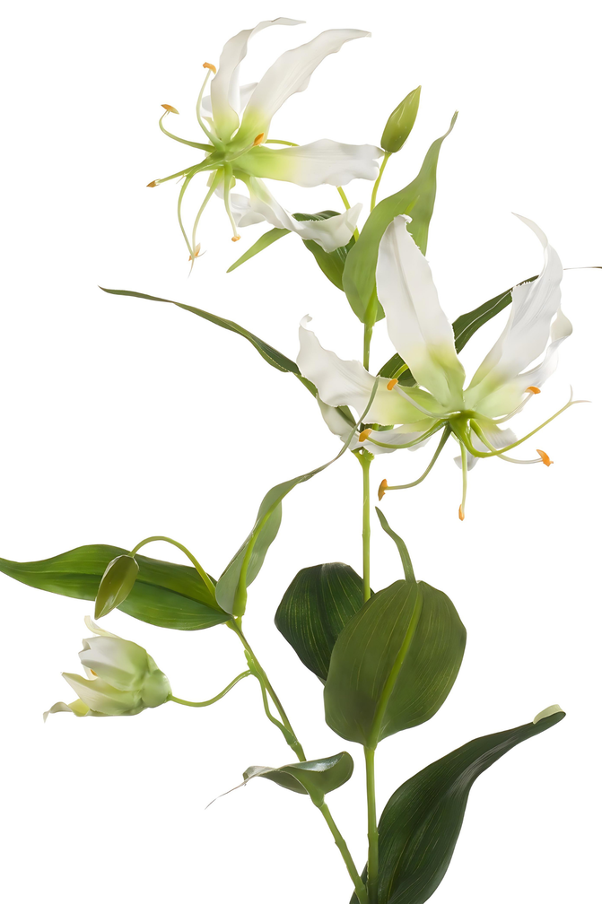 Ben jij ontzettend fan van alles dat ook maar elegant of exotisch is? Dan ben je met de Gloriosa spray cream aan het juiste adres. Deze zijden bloem voegt met zijn verfijnde crèmekleurige bloemen en ook sierlijke groene bladeren een luxe en vooral ook moderne uitstraling toe aan jouw zijden boeket en interieur.