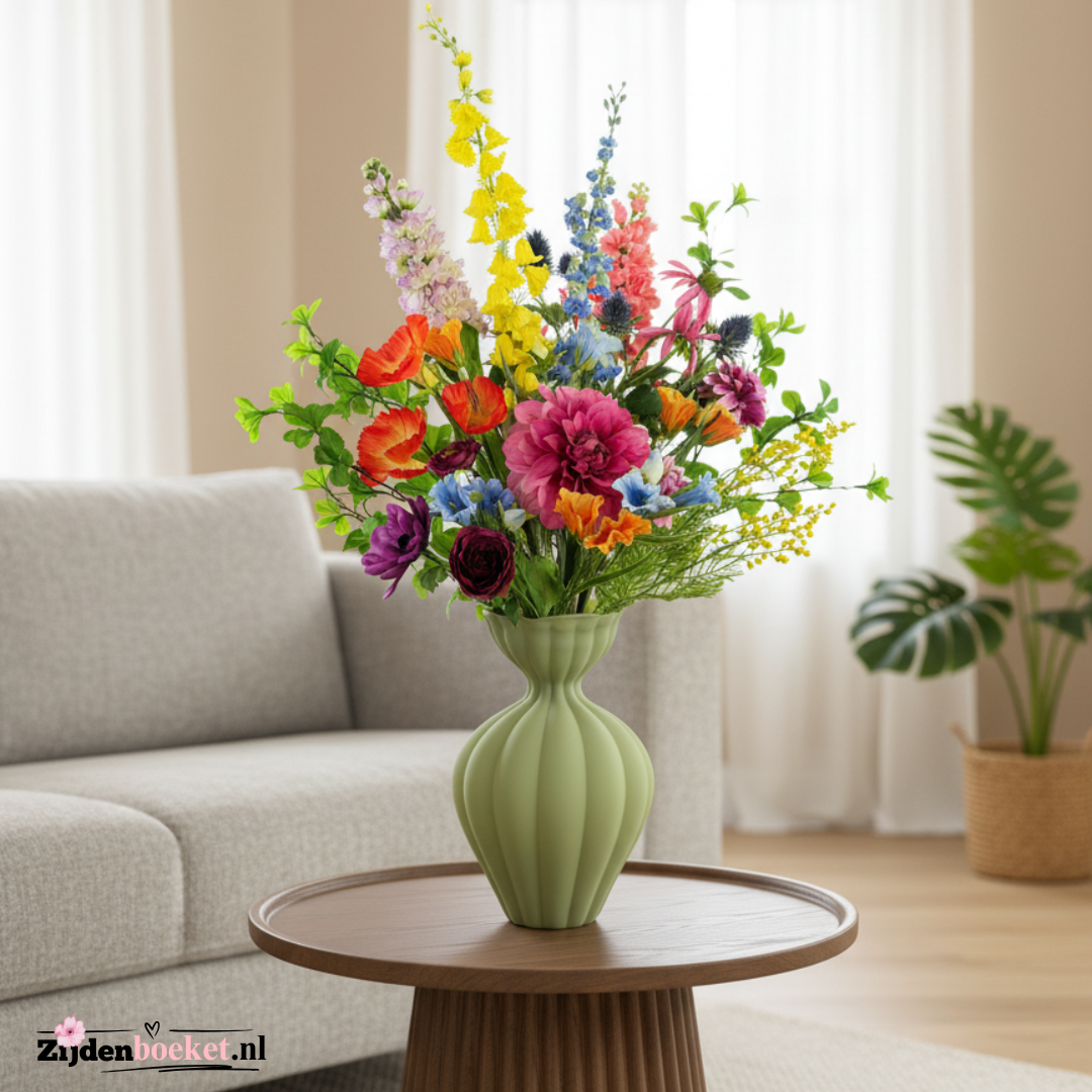 Gemaakt van de beste synthetische materialen, waardoor je boeket jarenlang mooi blijft. Het lijkt op zijde, maar is duurzamer én budgetvriendelijk. - Onderhoudsvrij