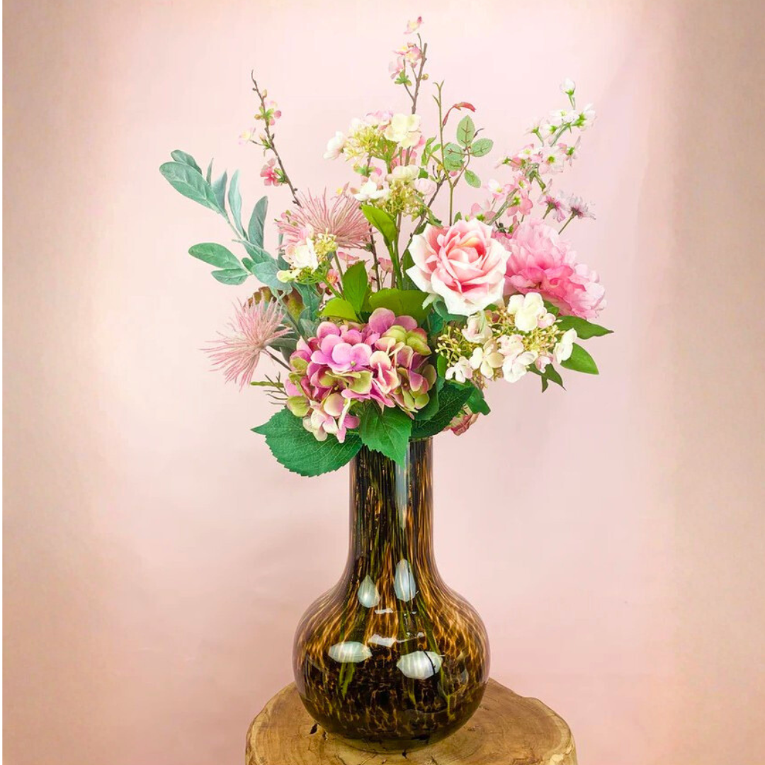 - Materialen: Zijden bloemen, stijlvolle vaas