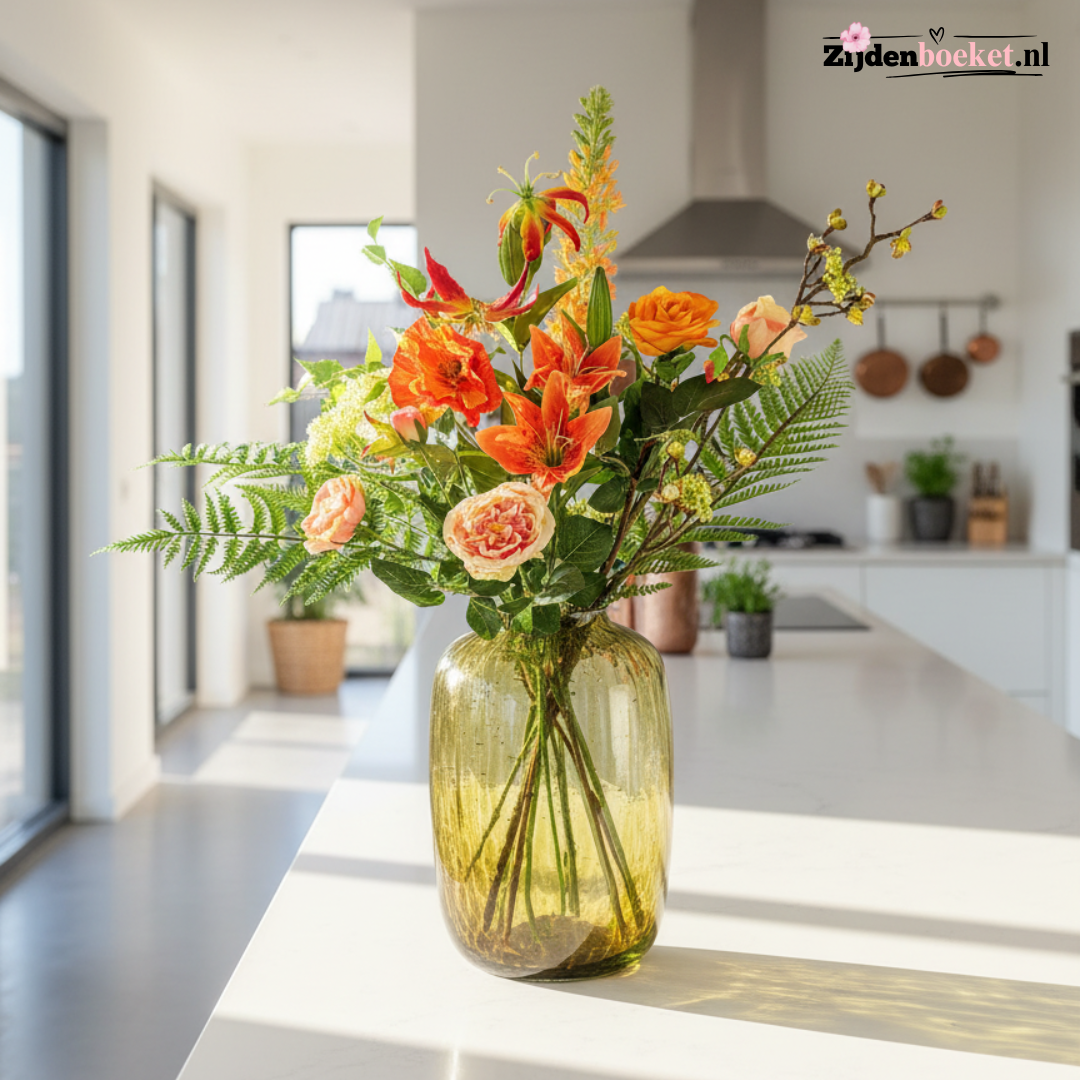Gemaakt van de beste synthetische materialen, waardoor je boeket jarenlang mooi blijft. Het lijkt op zijde, maar is duurzamer én budgetvriendelijk. - Onderhoudsvrij