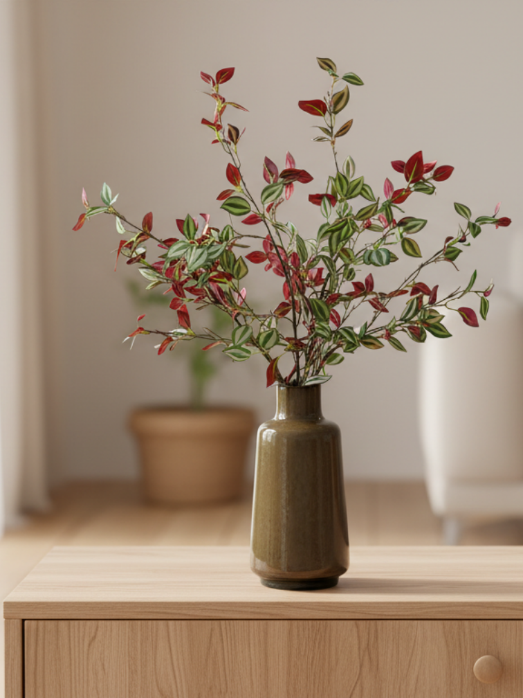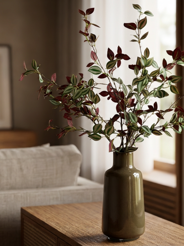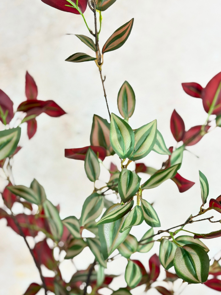 Zijden boeket "Leaves from the Vine" bestaat uit 4 zijden takken van de Tradescantia plant. Haal dat echte jungle gevoel naar jouw woonkamer met dit prachtige zijden boeket.