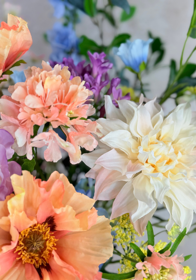 Ons prachtige zijdenboeket 'Pastel Droom' is een van de grootste zijdenboeketten uit ons assortiment. Met deze beauty haal je echt die chique en rustige sfeer naar jouw woonkamer! Lees meer