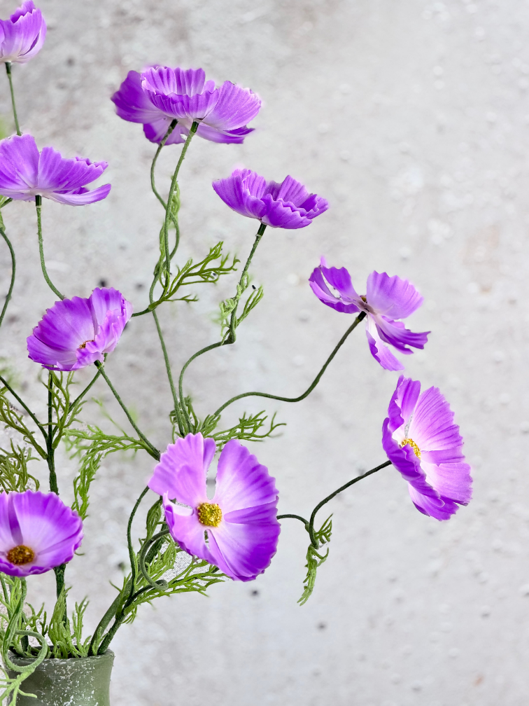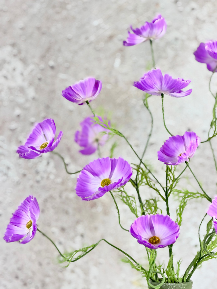 Stap binnen in een wereld van tijdloze elegantie met ons prachtige zijden boeket 'Veldboeket Lilac'. Bestaande uit prachtige Cosmos zijden bloemen.